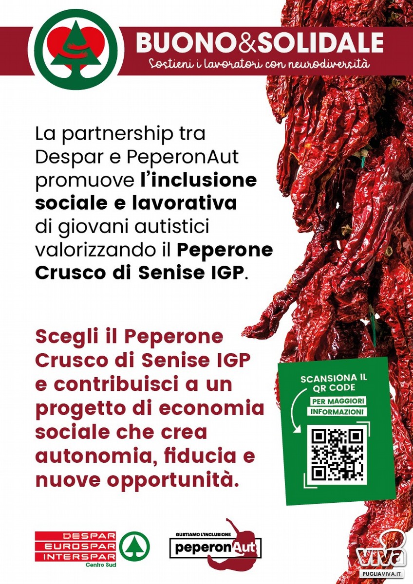 A rafforzare il valore del progetto sono previsti anche momenti di promozione in-store, durante i quali alcuni dei ragazzi coinvolti nel laboratorio PeperonAut saranno presenti nei punti vendita per incontrare i clienti, raccontare il proprio lavoro e il percorso di trasformazione dei peperoni cruschi, favorendo una relazione diretta e consapevole con il prodotto e il suo valore sociale.